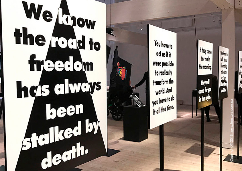 Изначально созданный для мероприятия в Королевском колледже искусств (Лондон), этот стенд с плакатами и футболками использовал цитаты известной правозащитницы Анджелы Дэвис, адаптированные художниками Sepidar Hosseini и George Chamoun для отражения текущих проблем в шведской культуре.
