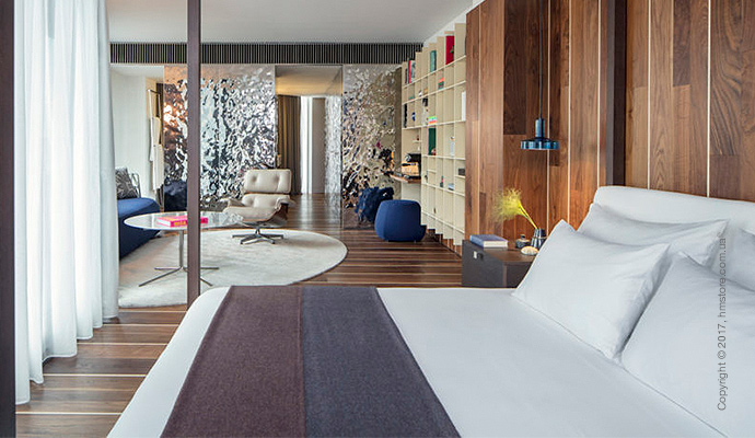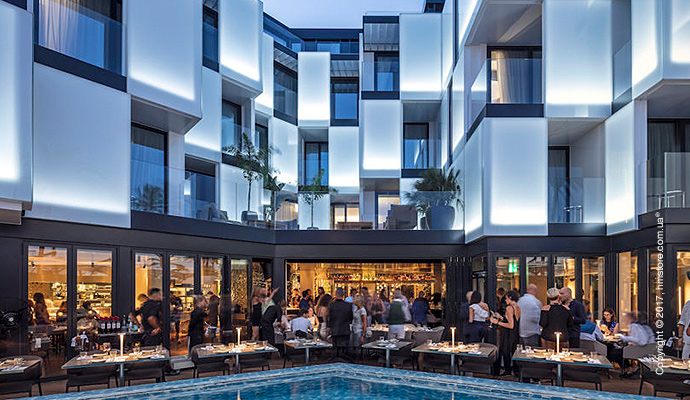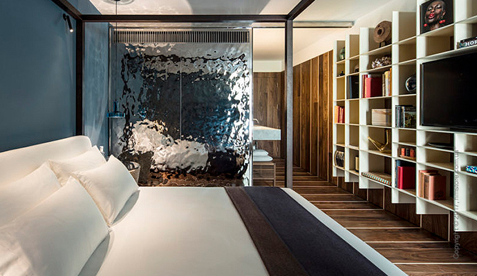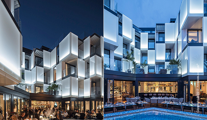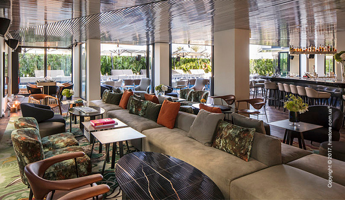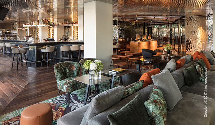 Интерьер общих мест отличается такими же отражающими стенами, что и гостевые номера. Пол выполнен из дерева, а потолок из алюминия создает эффект присутствия на лодке посреди моря. Отель предлагает выбор заведений, в которых можно вкусно поесть – собственный ресторан восточной кухни и бар «IZAKAYA Asian Kitchen & Bar» или первоклассный бургер-бар «THE BUTCHER», который открыт допоздна.