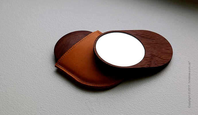Карманное зеркальце «Pocket Mirror» является практичной вещицей, которую удобно держать в руке и носить в кармане или сумке. Оно имеет чехол из итальянской кожи растительного дубления, который будет защищать его от повреждений и грязи. Зеркало доступно в двух размерах – 5см и 7см.