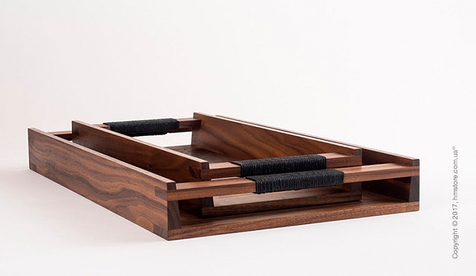 Подносы «Rectangle Trays» созданы из дерева с использованием металлических креплений и оплетенных ручек. Доступны в маленькой и большой версиях, могут удобно складываться друг на друга и предлагают вам на выбор несколько комбинаций – ясень + медь, дуб + латунь, орех + латунь и черный ясень + медь.