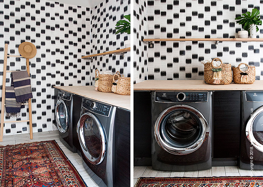 Дизайнер Sarah Sherman Samuel создала прачечную для проекта в Палм-Спрингс, которая отличается созданными ею же обоями, которые были напечатаны исключительно для этого помещения.