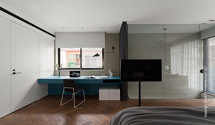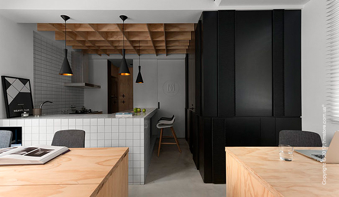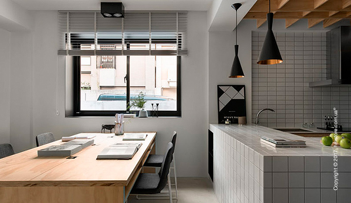 Студия «T.M Design Studio» занималась обновлением этого дома в Тайчжуне (Тайвань). Владельцы хотели создать обстановку, которая бы одновременно служила офисом и домом. Дом «Dual Concepts» гармонично объединяет в себе оба требования в здании, построенном более 60 лет назад. Семья хотела создать современный интерьер и, при этом, сохранить историю здания.