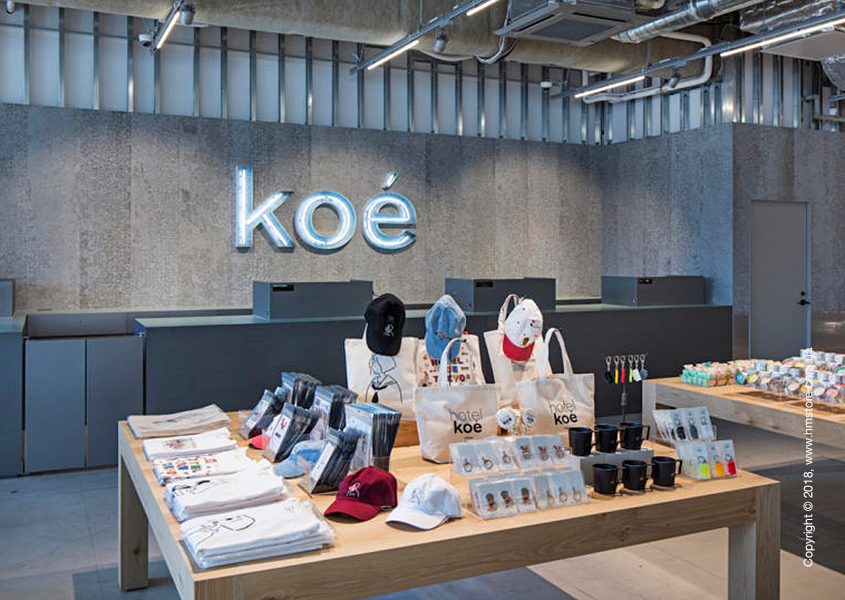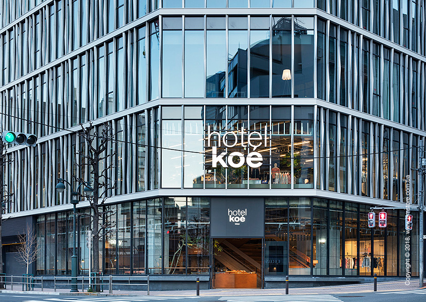 hotel koé – это не традиционный японский отель. Концепция этого места, спроектированного компанией Suppose Design Office, задумывалась как запуск флагманского магазина для бренда koé. Команда дизайнеров решила, что вместо того, чтобы просто создать магазин, открытый в обычные часы торговли, почему бы не построить отель и центр досуга, который объединит местных жителей и туристов, позволив им узнавать бренд koé 24/7.