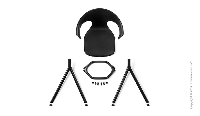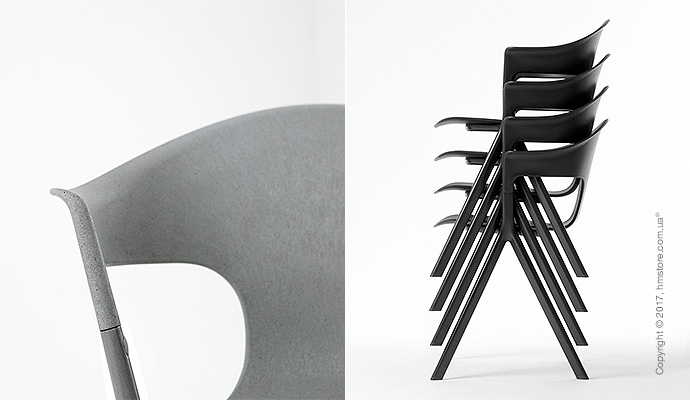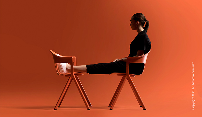 Бенджамин Хьюберт (Benjamin Hubert), основатель и креативный директор дизайнерского агентства «LAYER», объединил свои усилия с мебельным брендом «Allermuir» для создания коллекции мебели для кафе «AXYL». В нее входят стулья, барные стулья и столы, объединенные такими знакомыми элементами, как А-образная структура и закругленная спинка в стиле датский модерн, однако, в совершенно новой форме. Кроме того, все предметы коллекции созданы с использованием переработанного алюминия, древесного волокна, древесины и нейлона. Повторное использование материала играет очень важную роль, ведь используется всего 5% энергии, которая бы потребовалась для создания нового стула из алюминия. Утонченные ножки в форме буквы «Y» позволяют складывать эти стулья друг на друга для более удобного хранения. А легкие изгибы делают в основном линейный дизайн более мягким.