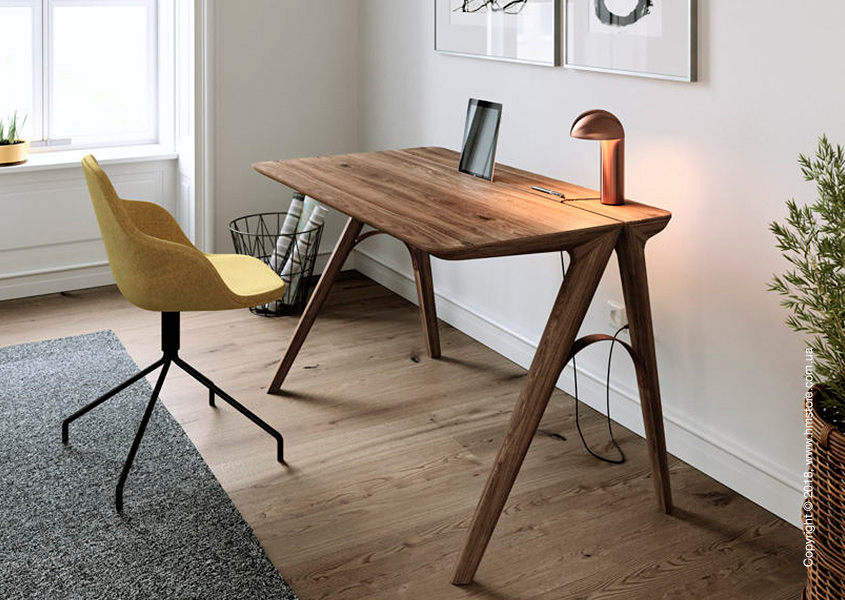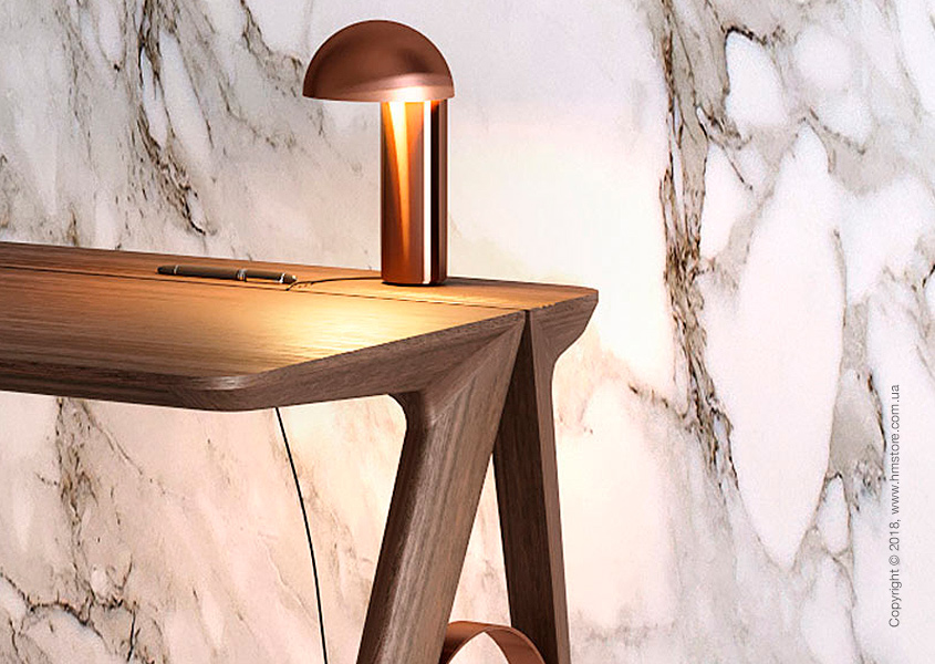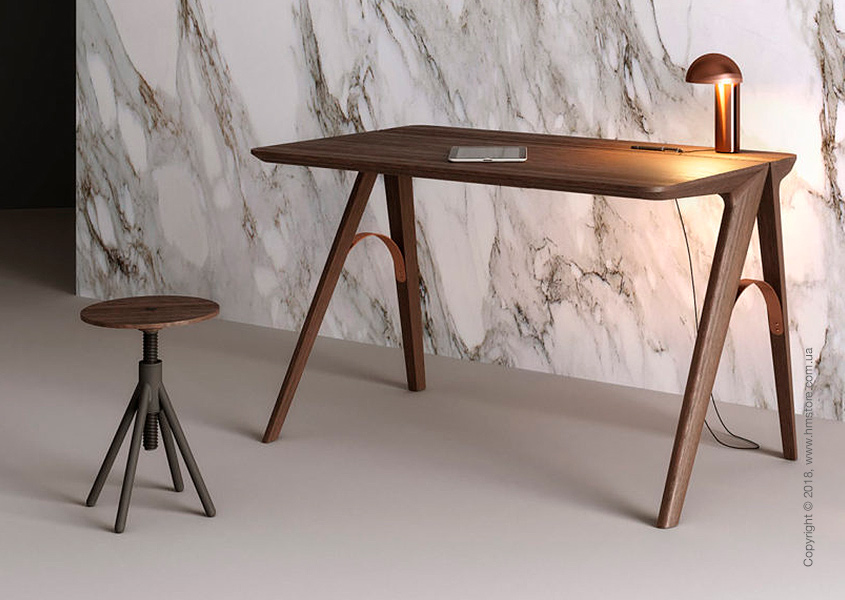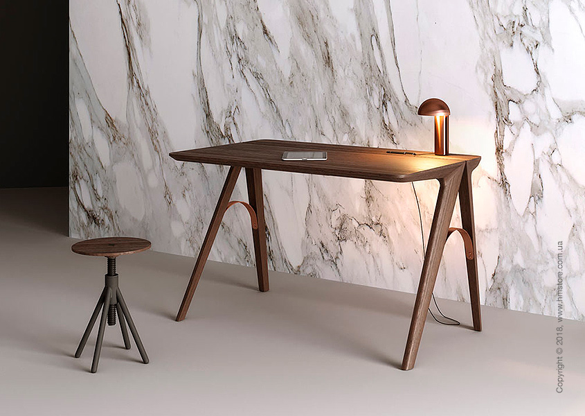 Французско-португальский дизайнер Christophe de Sousa почерпнул вдохновение в городе мостов – Порту (Португалия) – для создания своего нового предмета мебели. Рабочий стол «Bridge» создается из древесины дуба или ореха и имеет медные арки, соединяющие ножки. Этот дизайн напоминает структуру мостов в Порту. Bridge отличается гладкими, закругленными поверхностями, и в целом минималистичной эстетикой с собственной историей.