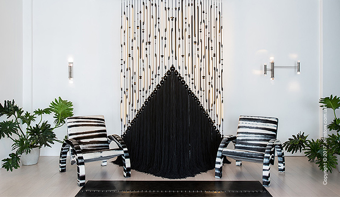 «Strange Days» – это инсталляция, курированная нью-йоркским дизайнером Бек Бриттейн (Bec Brittain) и созданная совместно с «Material Lust» и Alex P. White. Она состоит из необычных и идиосинкразических предметов, которые расставлены удобным и знакомым способом, и, при этом, в целом они преобразуются в роскошные изысканности.