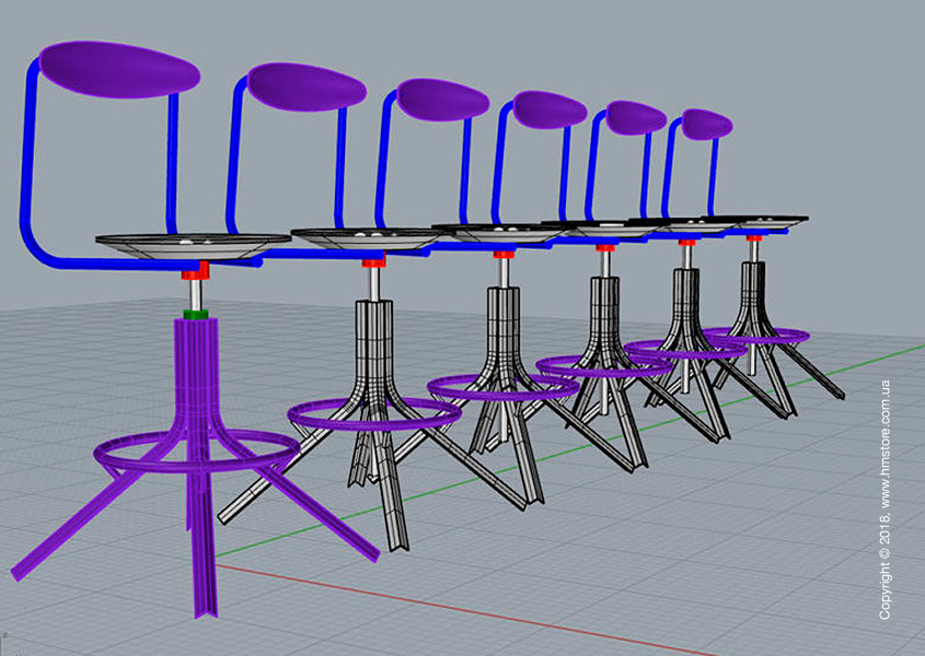 17. Подножка. Это – компонент, который делает табуреты действительно уникальными. Когда сиденье стула поднимается или опускается, подножка делает то же самое, всегда сохраняя удобную дистанцию.