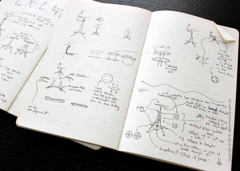 01. Эскизы. Все начинается с эскизов. Во время разработки нового дизайна продумываются качества материалов, их свойства и ограничения. Сам процесс дизайна различается в зависимости от продукта. В случае с этим табуретом было изрисовано множество листов бумаги.