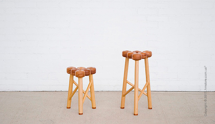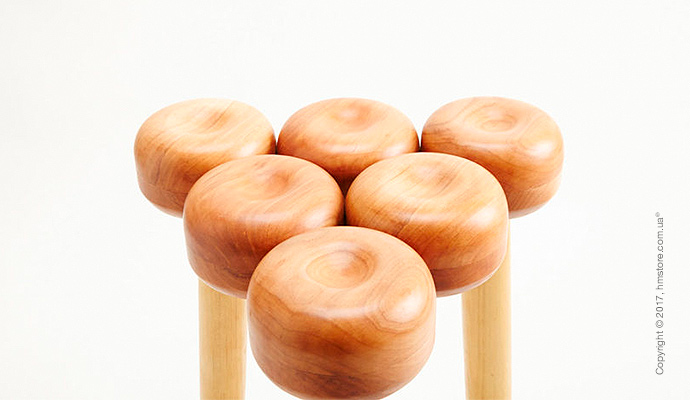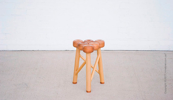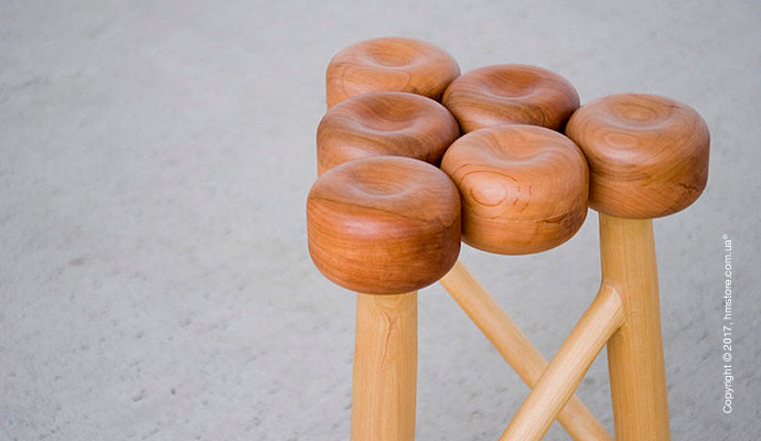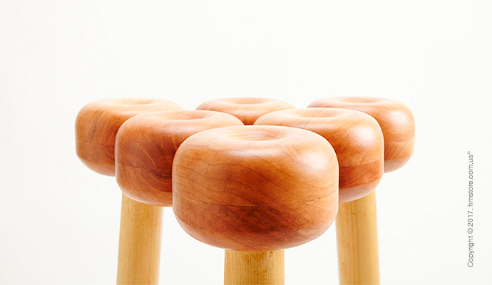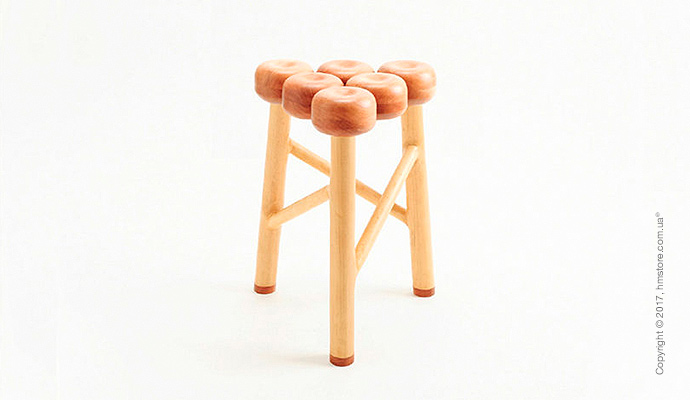 Поскольку яблони растут недалеко от фабрики просто в изобилии и не вырастают слишком высокими, есть смысл создавать из их древесины небольшие предметы. Сиденье этого табурета состоит из шести, похожих на яблоко компонентов. Каждое деревянное яблоко создается вручную местным мастером, который оттачивает каждый кусочек древесины до гладкой, кругловатой формы, напоминающей популярный фрукт.