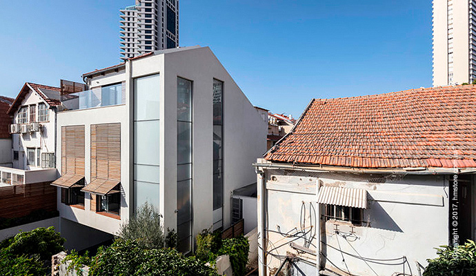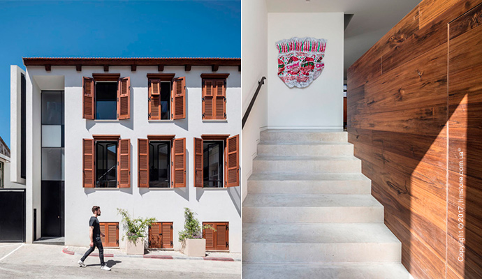 Расположенный в историческом районе Тель-Авива, дом «The Charm Townhouse» был спроектирован компанией «MGA | Meirav Galan Architect» совместно с «Urbany | Shai Fogel Architect» в качестве пристройки к дому, построенном в начале прошлого века. Он занимает площадь 320 кв.м. и занимает три этажа с подвалом. В этом таунхаусе сохранены все исторические особенности района, как того требуют городские правила, но при этом, по желанию семьи, были внедрены необходимые современные элементы. В передней части был создан современный вход на всю высоту дома, при этом были сохранены оригинальные окна, которые соответствуют окрестностям и окружающим домам.