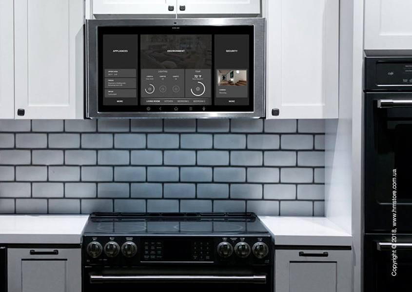 Подобно большим экранам Family Hub на холодильниках, которые начали появляться в последние пару лет, компания «GE» представила похожую версию устройства, которое служит еще и вентиляцией для варочной поверхности, расположенной под ним. Это устройство включает видео чат, камеру, доступ к рецептам и рекомендациям, доступ к календарям, кино, музыке и многое другое.