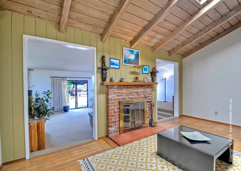 Сводчатый потолок в гостиной послужил отличным местом для хранения досок для серфинга.
