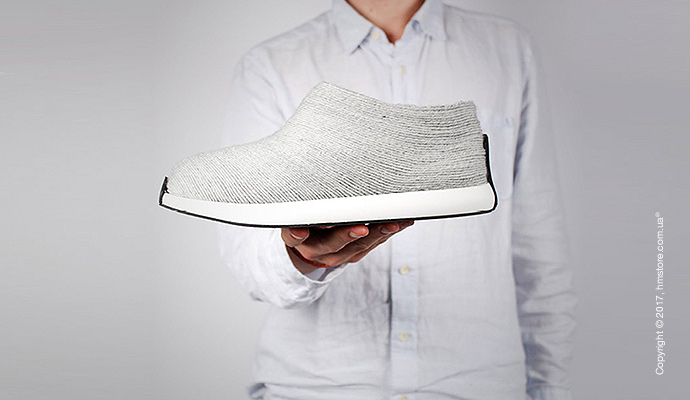 «3D Yarn» – это новый виток для древнего ремесла, известного как иглопробивное войлочное производство. Используя специальное оборудование, волокно сплетается ряд за рядом слоями определенной формы, создавая абсолютно новый вид трехмерной ткани. Преимущество этого материала в том, что он может принять любую форму и быть любого размера. Инновационная техника обеспечивает сокращение отходов, не делает лишних швов и создает абсолютно цельные предметы из органичной ткани, что отлично демонстрируется на этих кроссовках.