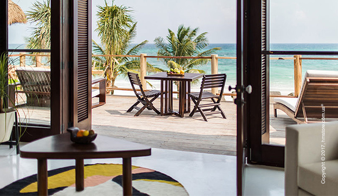 Номера «Beach Suites» имеют беспрепятственные виды на море и расположены прямо на песке, а «Jungle Suites» выходят на роскошные тропические сады отеля. Все эти номера созданы так, чтобы вы могли мгновенно расслабиться сразу при входе. Здесь можно найти кровать «king size», двойную ванну, расположенную прямо напротив моря, аудиосистему и smart TV (на случай, если вы устанете от видов). Светлые и просторные комнаты включают также мебель, сделанную под заказ, и произведения искусства от местных мексиканских мастеров, а также коллекцию книг об искусстве и дизайне.