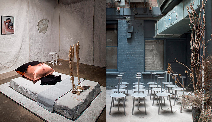 Проект «The Tactility of Seating» от Soojin Kang использует ткачество для создания новой перспективы для стульев. К спинке этого стула пришито плащеподобное покрывало, которое добавляет ему функциональности. Это – «компромисс» между столом и ковром, глядя на который можно поразмышлять о форме, текстурах и материалах.