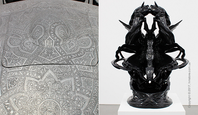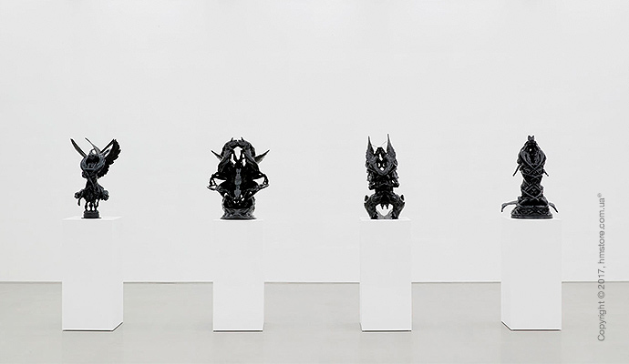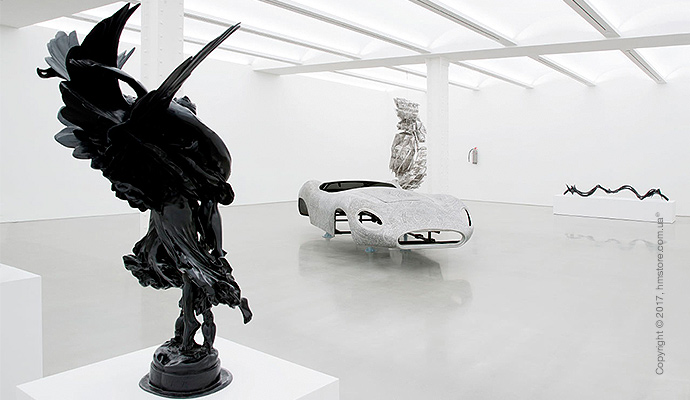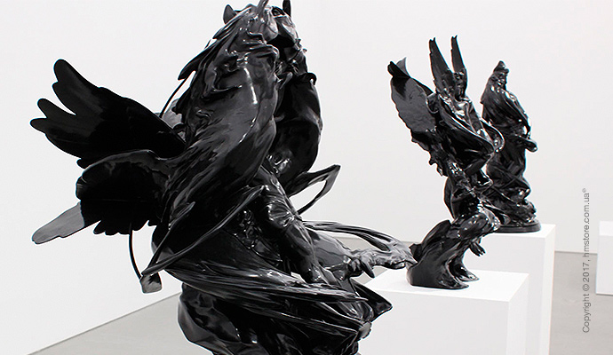 Конечно же, стоит отметить бронзовые скульптуры, выполненные в стиле неоклассицизм. Высотой чуть более полметра, эти скульптуры «произошли» из реальных неоклассических статуэток, которые были увеличены в цифровом виде, повернуты и зеркально отражены, в результате чего получили полностью трехмерные силуэты.