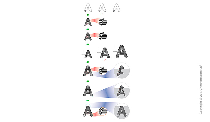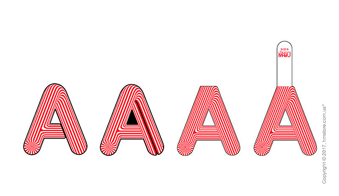 Каждая буква отличается оригинальным узором, навеянным искусством оптической иллюзии Виктора Вазарели, что делает их также небольшими произведениями искусства.
