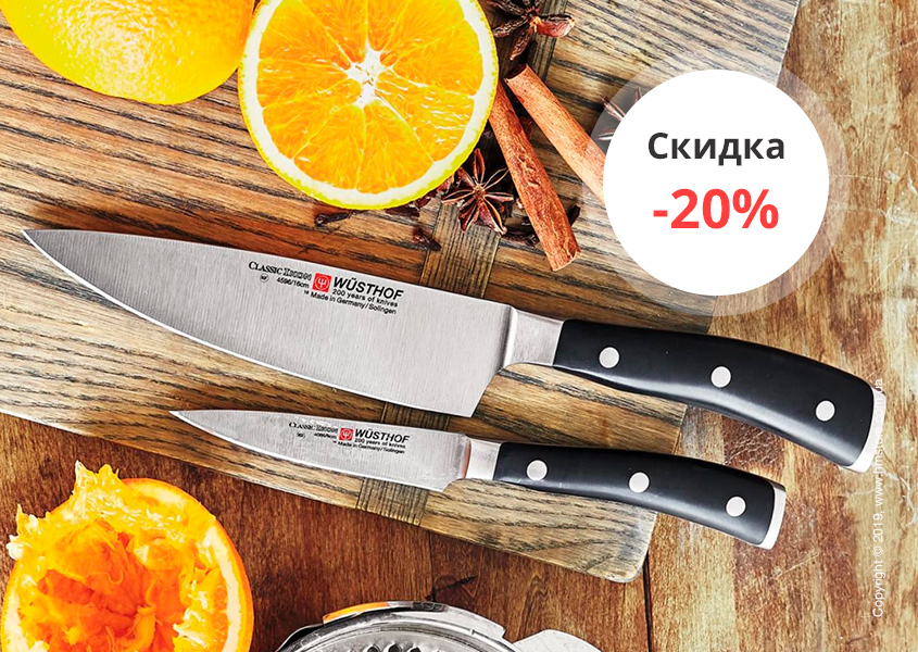 Спешим порадовать наших клиентов прекрасной акцией: -20% на выделенный ассортимент Wusthof, которая проходит с 15.08.2019 по 30.09.2019. Возьмите в руки ваш нож от компании Wusthof и почувствуйте страсть, качество и любовь вложенную от кончика до рукояти!<
