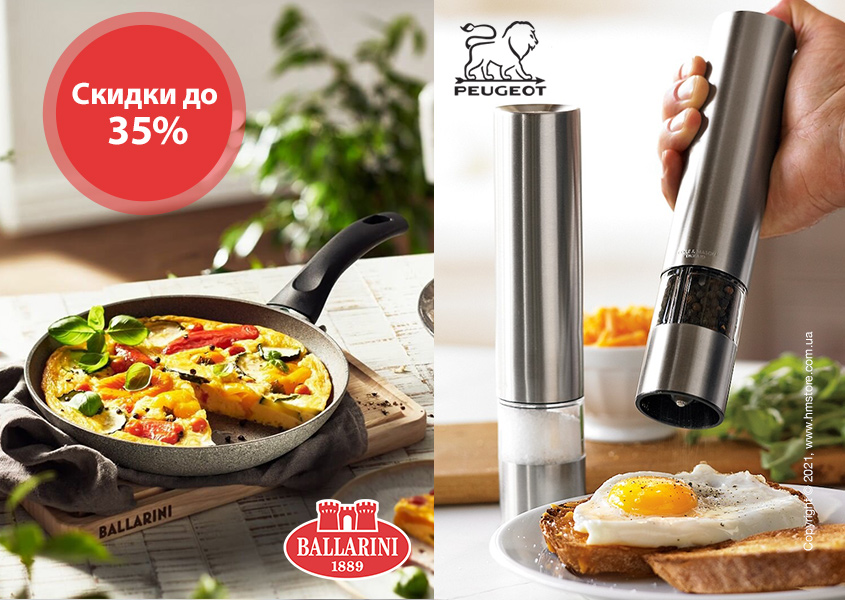В период с 17.06.2021 по 30.06.2021 у Вас появилась отличная возможность приобрести мельницы Peugeot и сковороды Ballarini со скидкой до 35%.