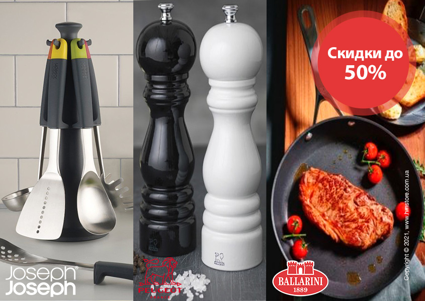 Лето продолжается и наша большая летняя распродажа тоже. Давно мечтаете приобрести знаменитые мельницы от французского бренда Peugeot или кухонные аксессуары Joseph Joseph, а может хотите качественную сковороду Ballarini? Тогда скорее воспользуйтесь нашим выгодным предложением, которое вас точно заинтересует. В период с 05.08.2021 по 31.08.2021 Вы можете приобрести товары представленных брендов со скидкой до 50%!