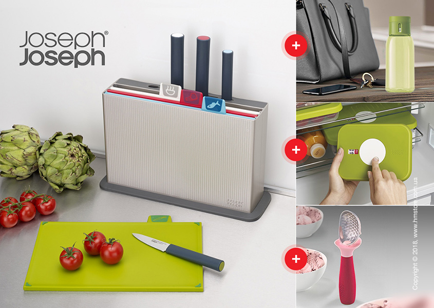 При покупке эффективных и умных домашних принадлежностей торговой марки Joseph Joseph от суммы 950 грн, получите один из летних хитов продаж за 49 грн! Спецпредложение продлится с 18.06.2018 по 31.07.2018.