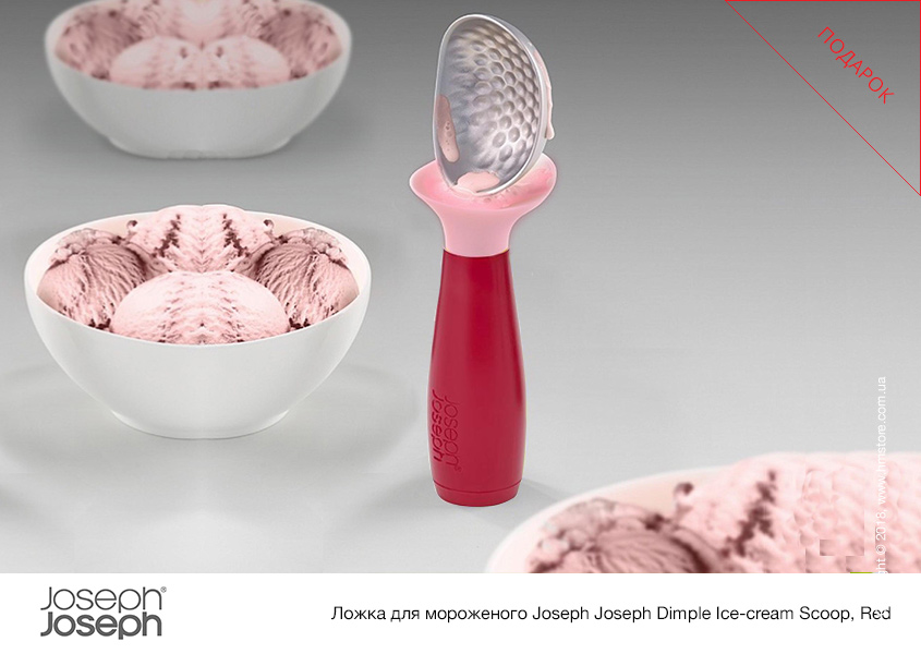 ложки для мороженого Joseph Joseph Dimple Ice-cream Scoop! Металлическая часть из цинкового сплава ложки не сгибается и не деформируется при создании аккуратного шарика. На ложечке есть силиконовый «воротник», который собирает капли растаявшего десерта, и не дает позволит вам запачкать руки.
