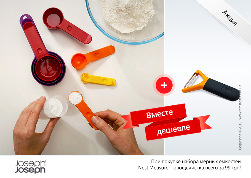 Возможно, нужны только мерные стаканчики? Восемь емкостей Joseph Joseph Nest Measure, Multi Colour да еще и овощечистка Joseph Joseph Multi-pell Julienne peeler по сниженной цене (99 грн, вместо 420 грн) – еще один вариант для вашего внимания. Не забывайте, краткость – сестра таланта!