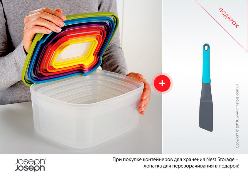 А чтобы разбудить своего Валентина ароматом свежеиспеченного завтрака и создать хорошее настроение на весь день, вам понадобится лопатка для переворачивания Joseph Joseph Elevate Kitchen Tools, которую вы получите в подарок к набору контейнеров!