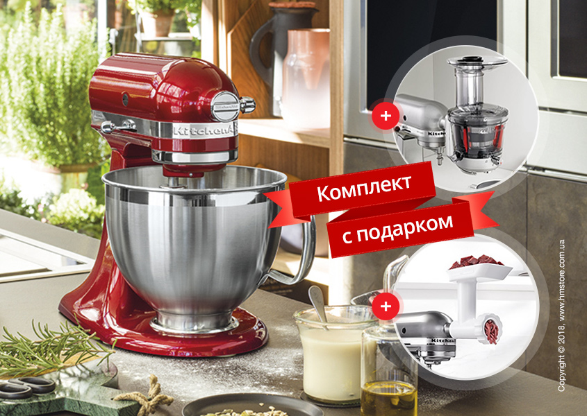 Сложно найти товары для кухни, которые стали такими же культовыми, как техника KitchenAid. Помимо узнаваемого дизайна они имеют высокую производительность и потрясающее качество. Планетарный миксер от американского бренда – это символ статуса и отличных кулинарных навыков. Помимо того, что кухонные приборы отличаются идеальной производительностью, к ним компания выпускает большое количество насадок. Благодаря им Вы можете превратить свой Kitchenaid Artisan во многофункциональную кухонную машину. И мы готовы помочь сделать Вам первый шаг навстречу американской кулинарной мечте! При покупке планетарных миксеров KitchenAid Artisan Bowl-Lift Stand Mixer XL 6.9 л (модель 5KSM7580XE), KitchenAid Artisan Series 5-Quart Tilt-Head Stand Mixer Plus Bowl 4.8 л (модель 5KSM175PSE) или KitchenAid Artisan Series 5-Quart Tilt-Head Stand Mixer 4.8 л, Frosted Pearl White Вы получаете в подарок 2 насадки: шнековую соковыжималку и мясорубку!