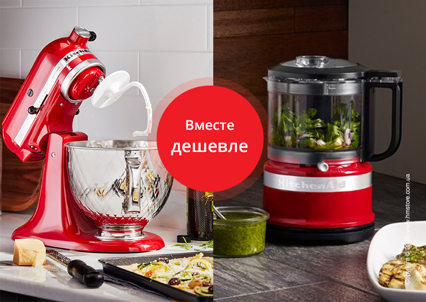 В предверии дня Св. Валентина и 8-го марта компания KitchenAid решила порадовать своих любимых хозяюшек подарками. С 04.02 по 09.03.2020 покупая миксер из линейки 5KSM125, Вы получаете в подарок измельчитель из серии 5KFC3516. Что может быть лучше, чем получить в подарок легендарный планетарный миксер от всемирно известного бренда. Такое устройство замесит тесто в считанные минуты, поберегите Ваши ручки и отдохните, пока техника сделает всю работу за Вас. А мини-комбайн, который Вы получаете в подарок, быстро измельчит любые продукты и вот начинка для пирожков уже готова. Все еще думаете, что подарить на праздники маме, жене, сестре? Воспользовавшись нашим преложением, у Вас гарантированно появится два подарка и возможность каждой хозяйке почувствовать себя настоящим шеф-поваром на домашней кухне вместе с техникой KitchenAid.