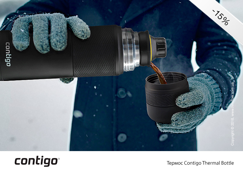 Для длительных путешествий возьмите с собой полностью герметичный термос Contigo Thermal Bottle, ведь его объема, точно хватит! Он сохранит теплым ягодный чай или крепкий бодрящий кофе до девяти часов, а температуру холодных напитков будет поддерживать до 21 часа!