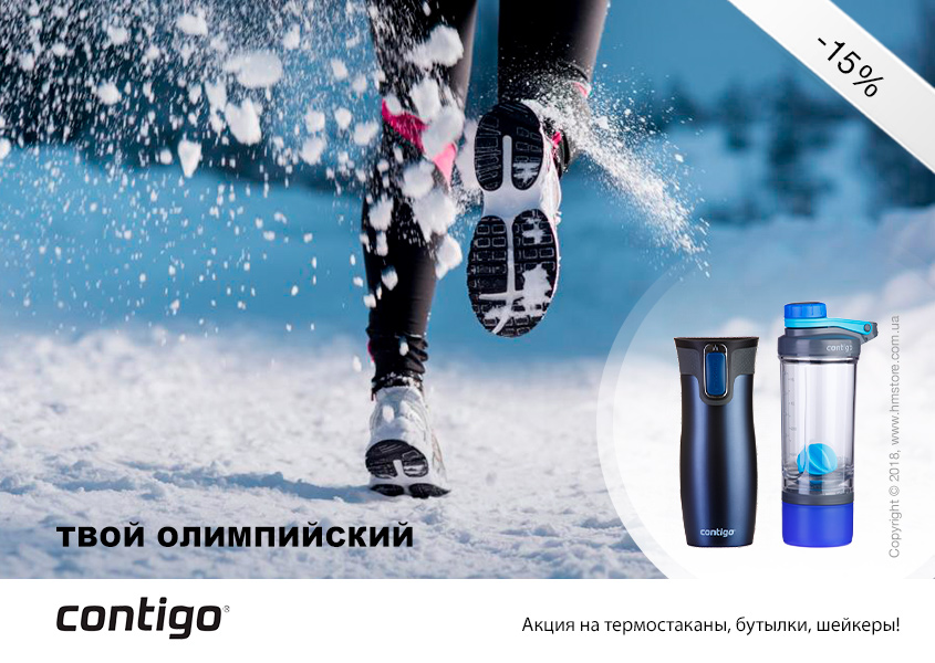 Для наших горячо любимых покупателей, мы устраиваем ошеломительный бум скидок на все бутылки, шейкеры и термостаканы от торговой марки Contigo! Акция приурочена к XXIII Зимним Олимпийским играм в Республике Корея и продлится с 1 и по 28 февраля 2018 года.