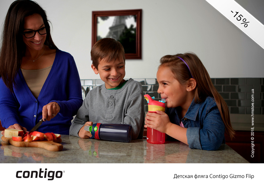Для активных прогулок или поездки вашего малыша выбирайте детскую бутылку Contigo Gizmo Sip. Она не разобьется, если выскользнет из детских рук во время игр, благодаря упрочненному дну. Кроме этого она вооружена носиком для большего удобства питья.