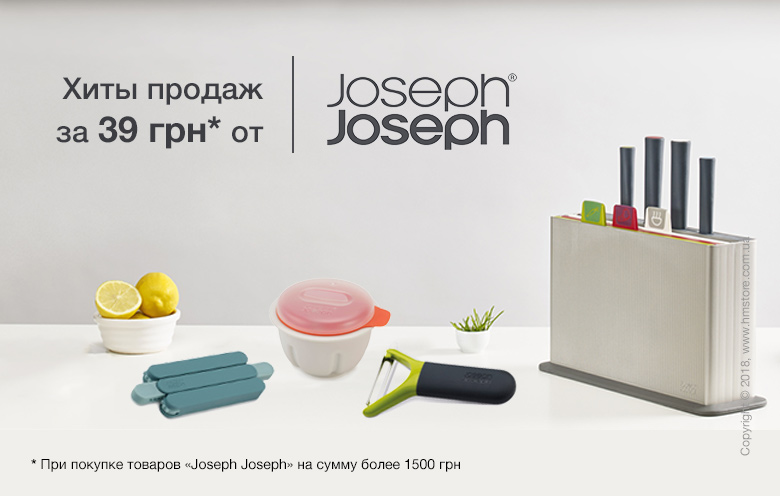 Хорошие новости! Скидки продолжаются. Чтобы вы успели основательно подготовиться к новогодним праздникам, мы предлагаем вашему вниманию акцию с сюрпризом: при покупке любого товара Joseph Joseph на сумму от 1500 грн вы получаете возможность приобрести один из хитов продаж по невероятно приятной цене 39 грн.