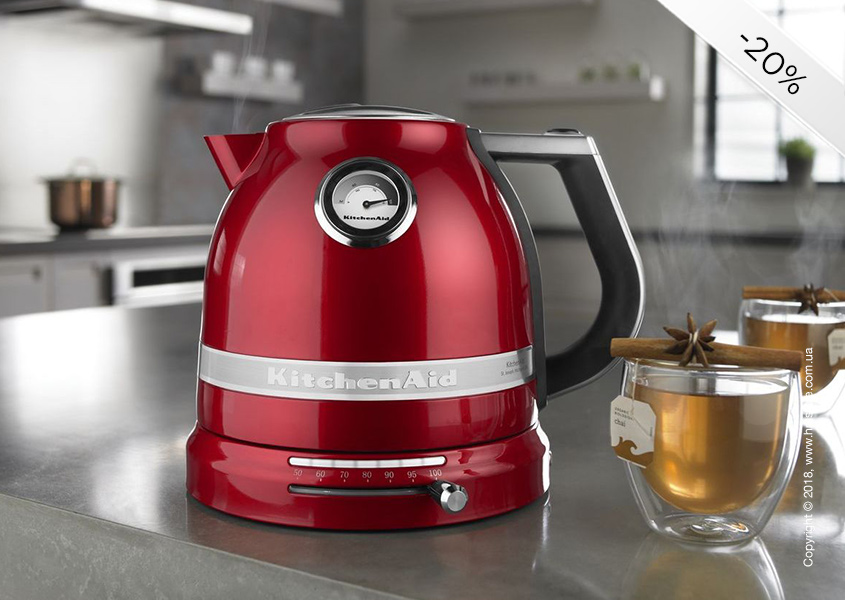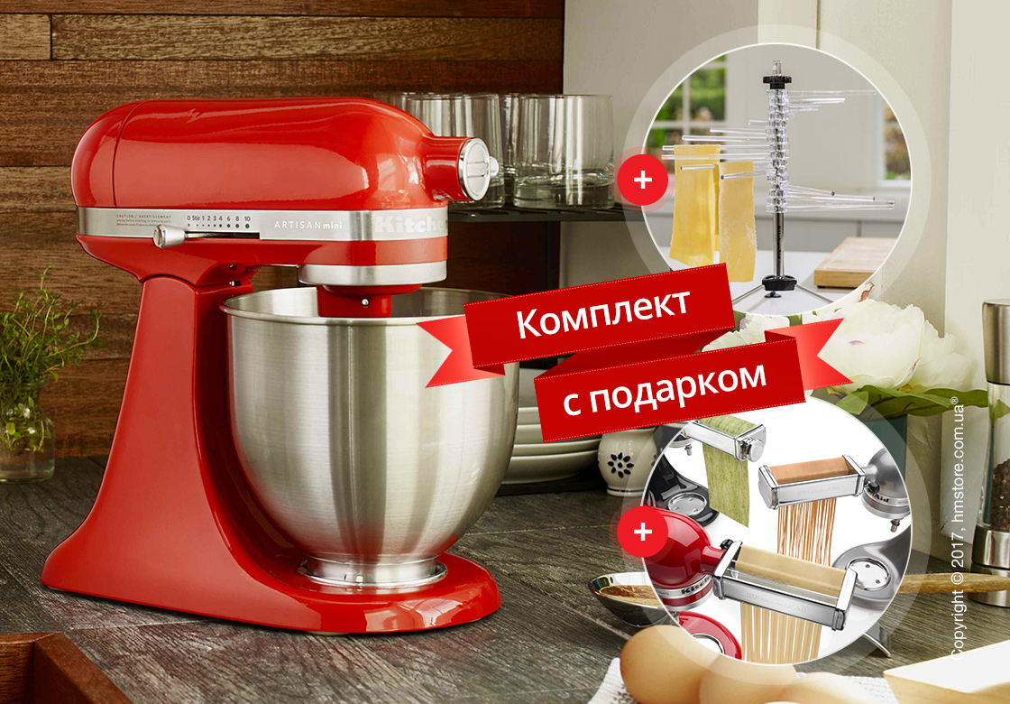 Двойная акция от американского бренда «KitchenAid»: с 08.12.17 по 14.01.18 на все электрочайники KitchenAid скидка 20%, а также при покупке планетарного миксера в подарок прилагается комплект насадок для приготовления пасты + подставка для сушки пасты.