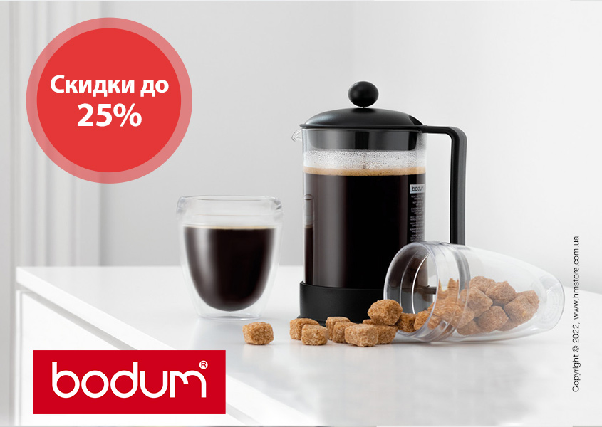 Приготовить и подать вкусный, ароматный кофе, для своей второй половинки в день всех влюбленных, Вам поможет посуда Bodum. Компания является признанным лидером в сфере производства стильной и функциональной посуды для кофе и чаепития, а также различных кухонных гаджетов и аксессуаров. Специально для Вас мы подготовили праздничные скидки. В период с 01.02.2022 по 14.02.2022 гг. продукцию компании Bodum можно приобрести со скидкой до 25%.