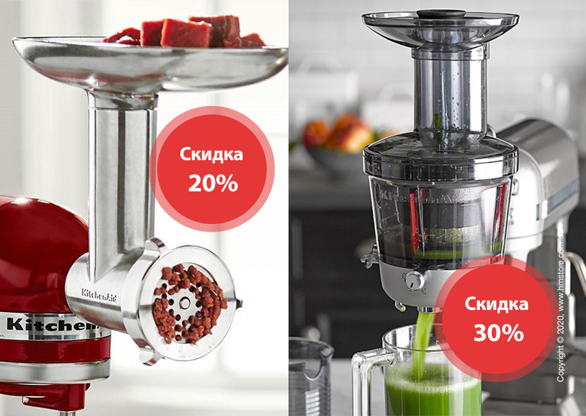 Скидки на самые популярные насадки для миксера KitchenAid – мясорубка и соковыжималка