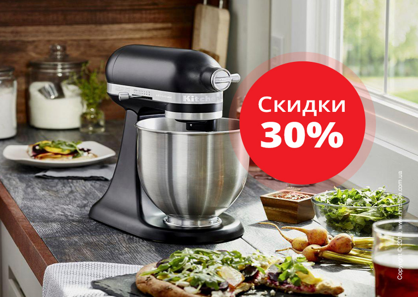Начиная с 15.11 по 20.12.2019 покупая планетарный миксер из серий 5KSM125 и 5KSM3311 любой расцветки, Вы получаете скидку 30%.