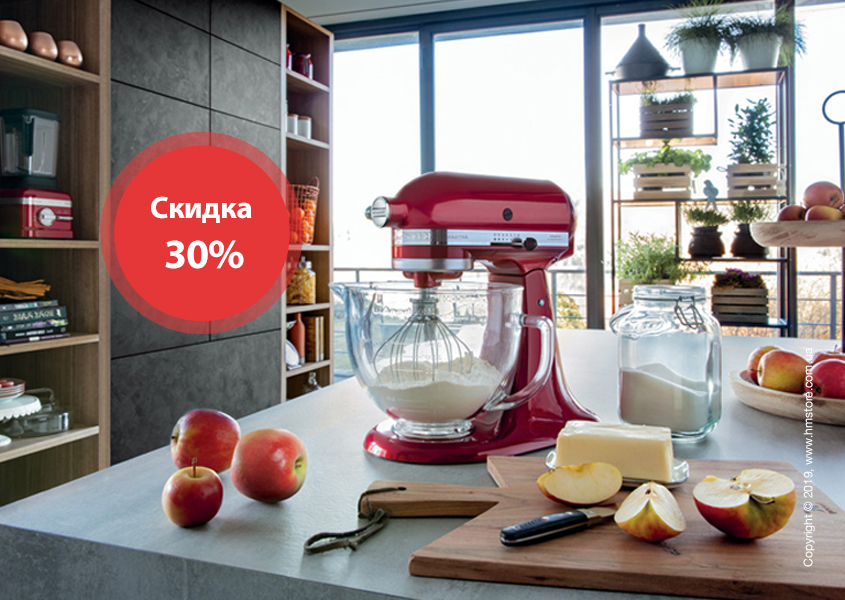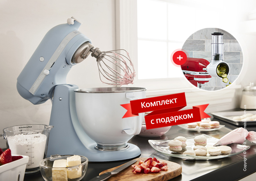 Только с 10.06 по 10.08.2019 миксеры KitchenAid серий 5KSM125 и 5KSM3311X в любой расцветке Вы сможете купить со скидкой 30%. А при покупке миксеров серий 5KSM175PSE и 5KSM7580XE Вы получите в подарок замечательную насадку овощерезку KitchenAid Fresh Prep Slicer/Shredder.
