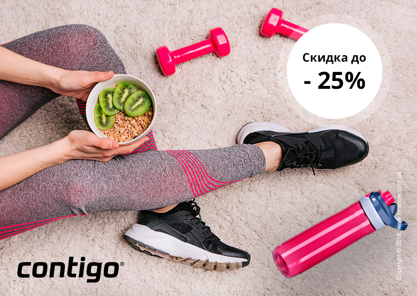 Акция -20% на бутылки для воды и -25% на термостаканы Contigo действует в период с 04.03.2019 по 20.03.2019