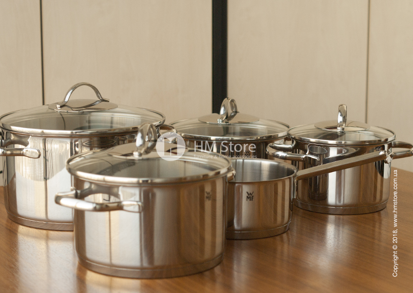 Корпус кастрюль имеет глянцевую зеркальную поверхность, детали – сатиновую. Выступающий обод предназначен для удобного переливания из кастрюль в другие емкости. Прозрачные крышки позволяют следить за процессом приготовления без лишних манипуляций. Классический дизайн WMF Provence Plus позволяет набору сочетаться с абсолютно любым интерьером кухни.
