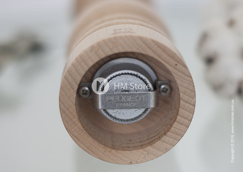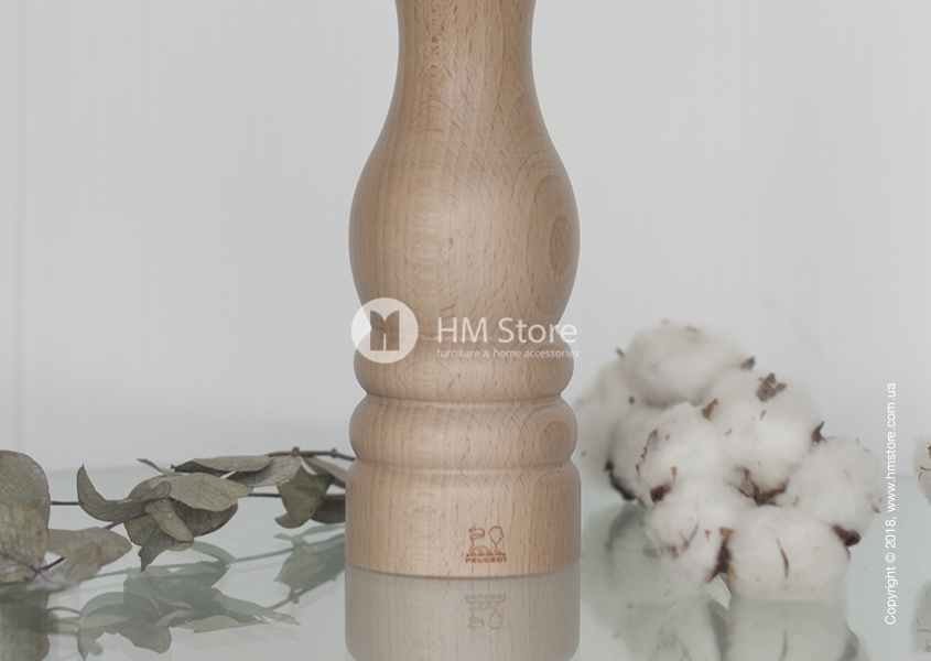 Корпус мельницы Peugeot Paris – это полированный и лакированный светлый французский бук, произрастающий и разрешенный к использованию на производстве исключительно французской фирме Peugeot. Древесина вытачивается и обретает форму вручную, сохраняя традиционные методы изготовления, накопленные годами. Поверхность не соскальзывает в руках даже при намокании, а искусно вырезанный силуэт корпуса органично ложится в ладонь.