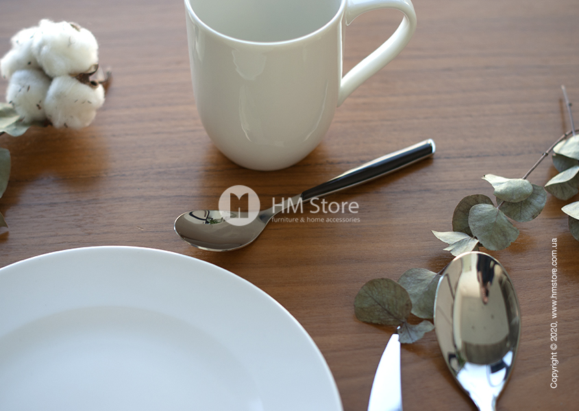 Набор состоит из основных приборов для комфортного приема пищи. Столовая ложка имеет небольшое углубление, для удобного употребления первых блюд. У вилки – четыре зубца, которые при надавливании не деформируются, что говорит об их качестве и она идеально подходит для вторых блюд. А нож оснащен заостренными зубчиками, для разделки мясных блюд. Чайная ложка предназначена для различных десертов.