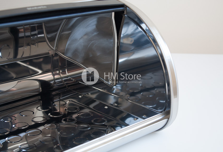 Хлеб – это тот, продукт, который присутствует в каждом доме. Он требует определенных условий для хранения. Его не желательно хранить в полиэтиленовых пакетах – лучше в закрытой емкости. Она должна быть сухой и герметичной. Поэтому хлебница – лучший выбор современных хозяек. Brabantia Roll Top Bread Bin сделана из нержавеющей стали, благодаря чему имеет особую прочность, не поддается коррозии и, следовательно, абсолютно безопасна для хранения хлеба без упаковки. Гладкая матовая поверхность позволяет изделию вписаться в интерьер современной кухни и гармонировать как с техникой, так и с мебелью.