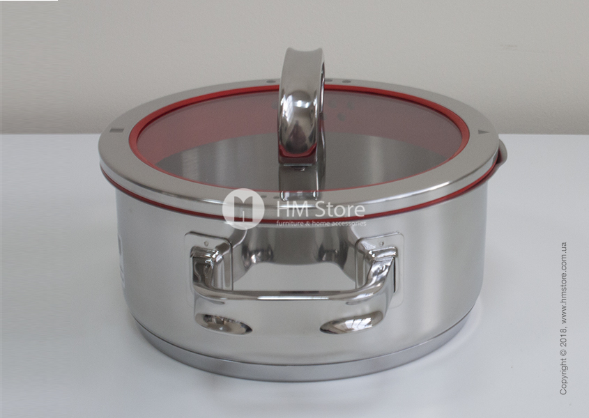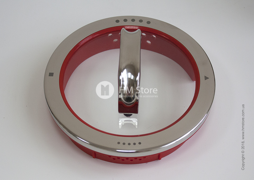Крышки произведены из жаропрочного стекла. Металлические края дополнены красным силиконовым ободом, который надежно фиксирует крышку на кастрюле.
