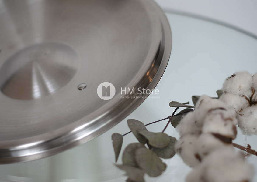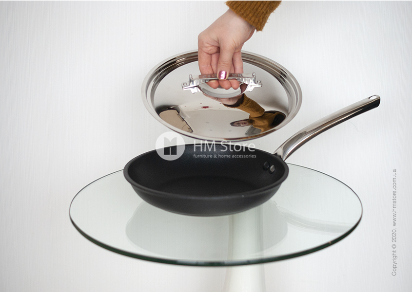 Аксессуар выполнен из полированной нержавеющей стали, который поражает сияющим блеском. Крышку можно использовать с любой кухонной посудой, диаметр которой не более 24 см.