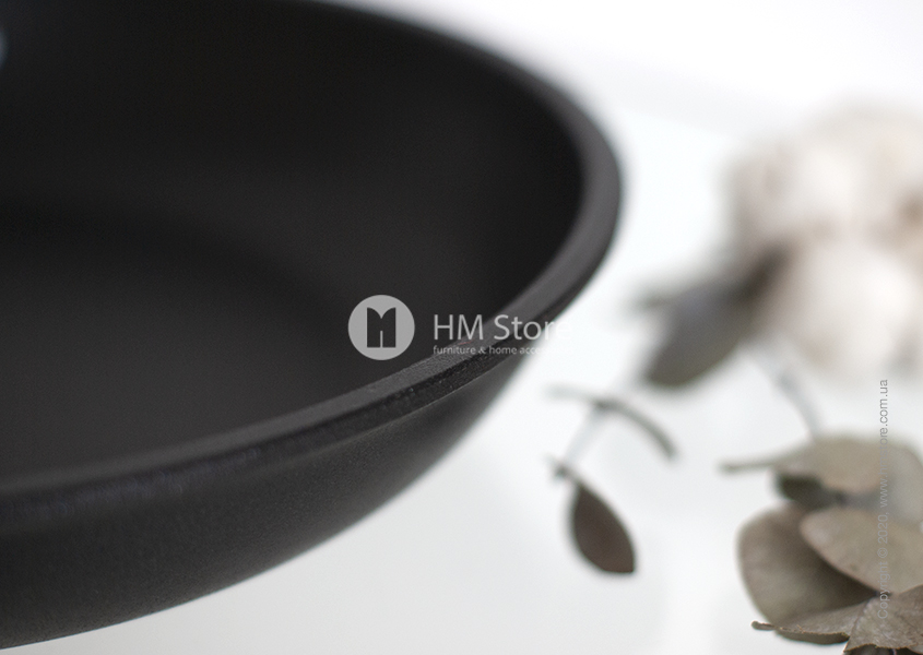 Края изделия немного загнуты, а боковые стенки сужаются у основания сковороды. Эта универсальная форма сковороды, которая прекрасно подойдет для длительного томления и разогрева.