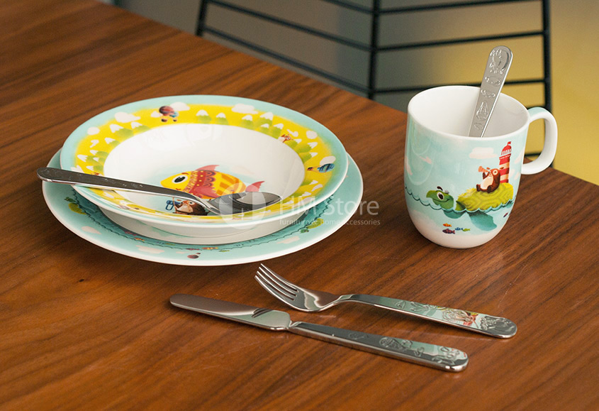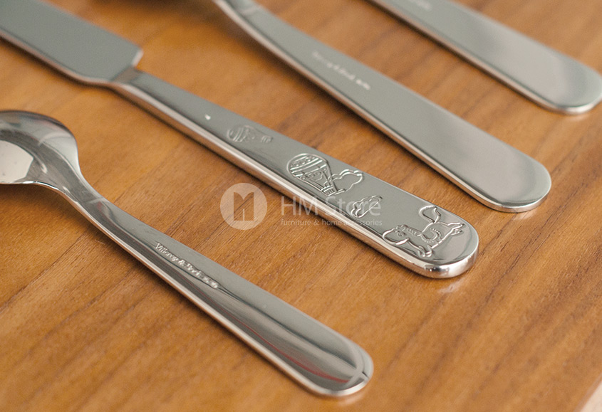 Столовые приборы – это те предметы, к которым выставляются особенные требования. Они должны иметь безопасные формы и быть выполненными из качественного материала. Компания Villeroy & Boch изготавливает свои столовые приборы из нержавеющей стали 18/10. Также они отлично держат форму, не ломаются и не имеют острых краев. На ручках изделий выгравированы такие же персонажи, что и на посуде. Приборы имеют небольшие размеры, благодаря чему детям будет удобно ими пользоваться.