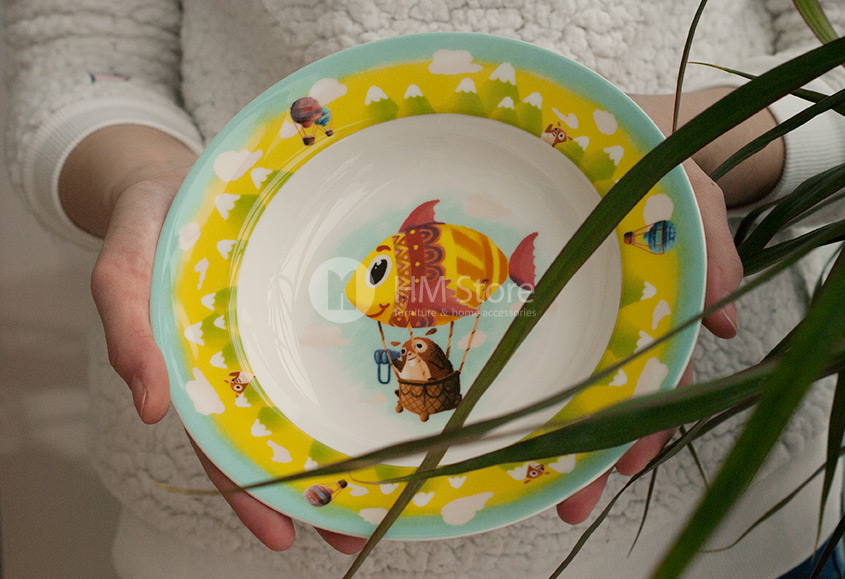 Глубокая тарелка поможет Вам накормить своего ребенка полезной кашей или супом. Яркий рисунок на ней изображает хомяка на воздушном шаре, путешествующего в небе и рассматривающего все вокруг через бинокль. С такой тарелкой даже многими нелюбимая манная каша будет выглядеть намного аппетитнее.