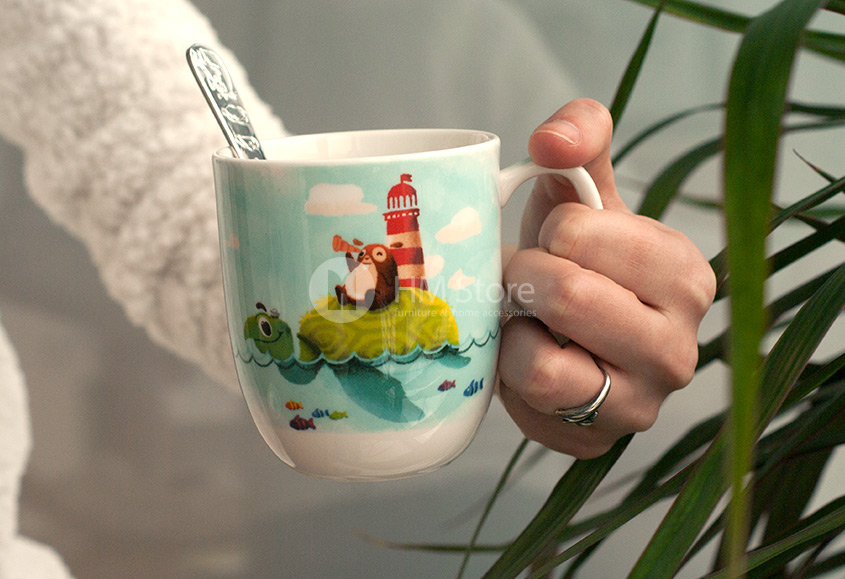 Чашка – это еще одно красочное и интересное изделие из набора. На её стенках нанесен такой же рисунок, как и на глубокой тарелке. Небольшая ручка позволяет детской ладошке удобно захватиться за неё. Чашка подходит как для чая или какао, так и для домашнего сока или компота. Изделие не окрашивается и легко моется в посудомоечной машине или вручную.